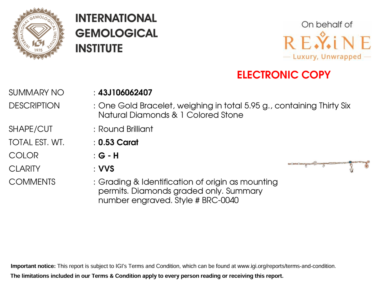 The true brilliance is lies in its diamond composition. Thirty-six meticulously selected round diamonds, with a combined weight of 0.53 carats, are expertly set to maximize their collective sparkle. Each round diamond is chosen for its exceptional brilliance and fire, ensuring that the bracelet catches and reflects light with every subtle movement of the wrist. This significant carat weight contributes to a substantial visual impact, creating a continuous ribbon of shimmering light that dances around the wrist. The precision in setting these diamonds speaks volumes about the craftsmanship involved, guaranteeing both their security and their ability to unleash their full, dazzling potential.
