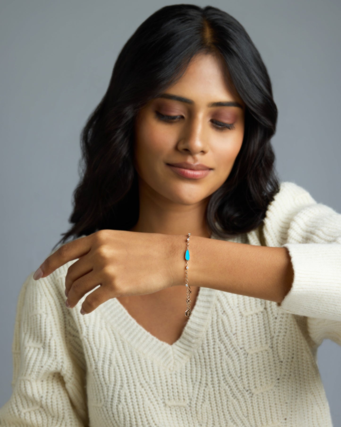 Introducing the Rosy Glow Diamond Bracelet, a perfect blend of elegance and sophistication for the new-age working woman. Crafted from luxurious 18-karat rose gold and weighing just 4.19 grams, this exquisite bracelet features 8 round diamonds totaling 0.39 carats (CTTW). Its charming design and soft rosy sparkle add a subtle touch of luxury to any professional attire. Ideal for those who appreciate a timeless style and understated glamour, the Rosy Glow Diamond Bracelet brings a hint of natural elegance to your everyday look.